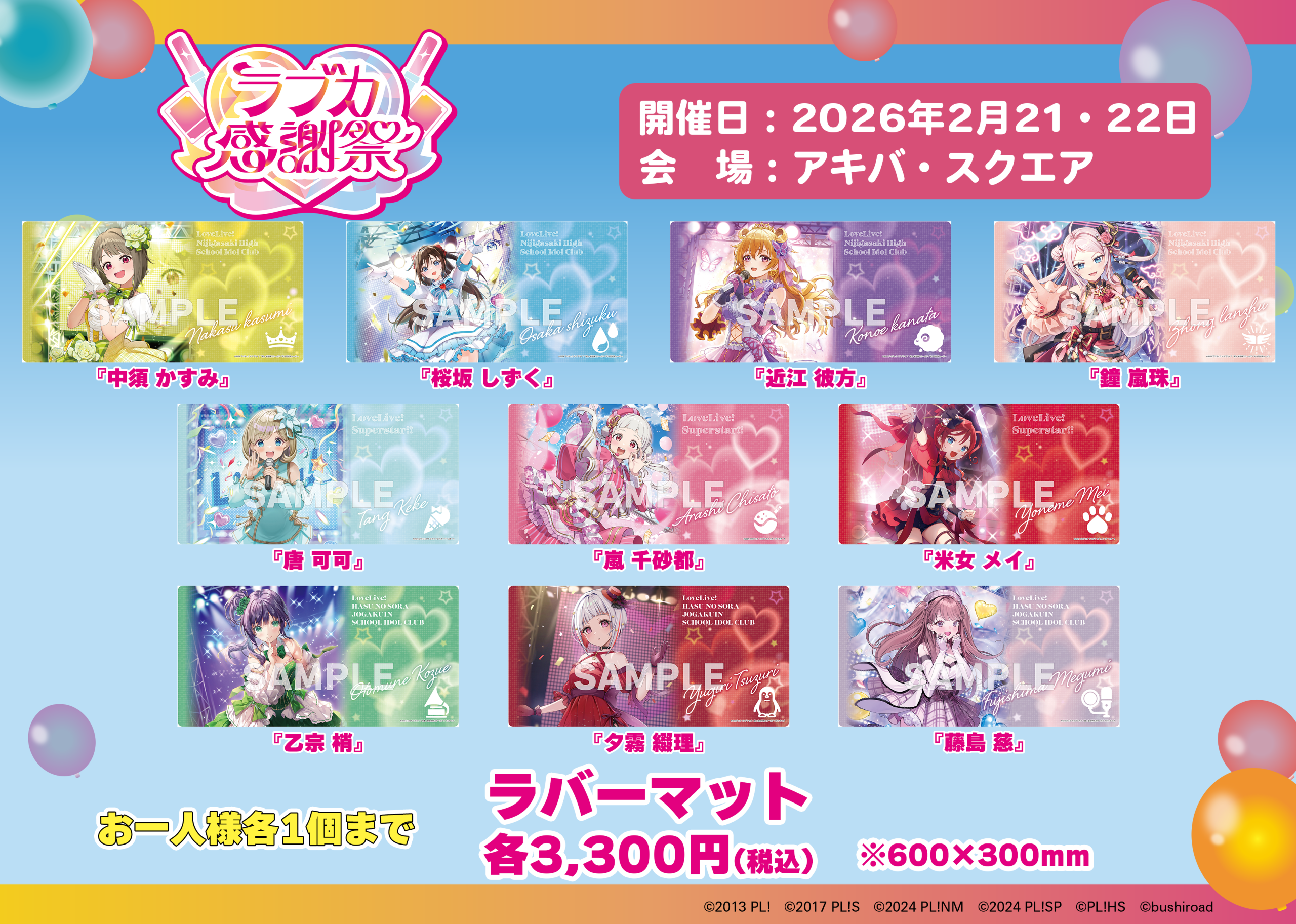 ラブカ感謝祭ではラブカ新商品の先行販売や、たくさんの新グッズの販売を行います!